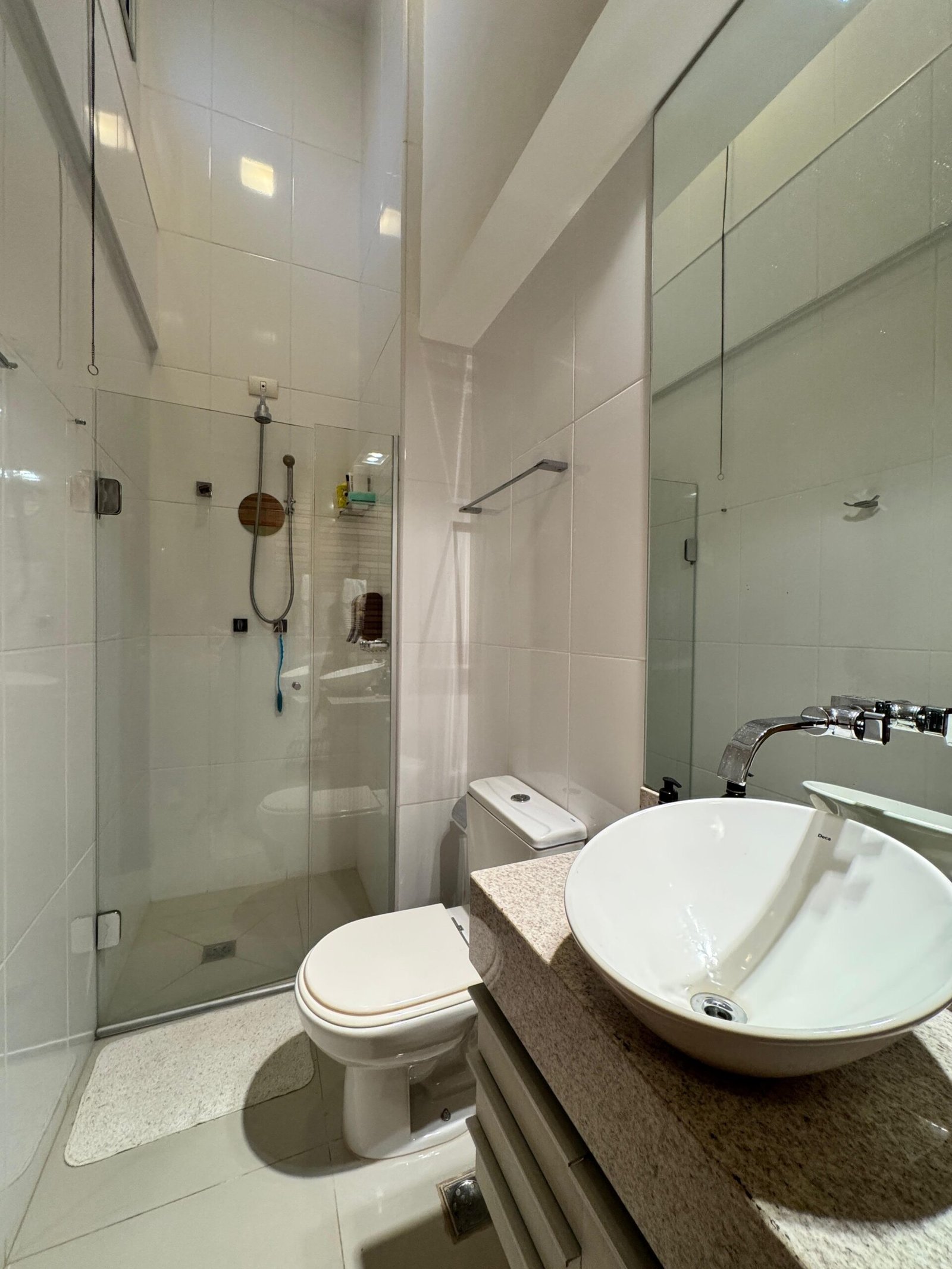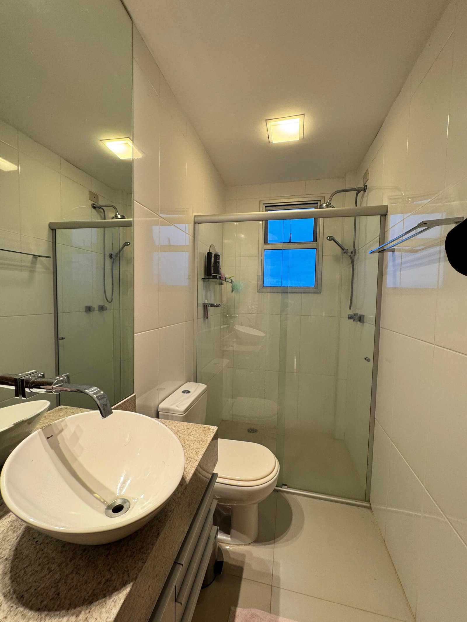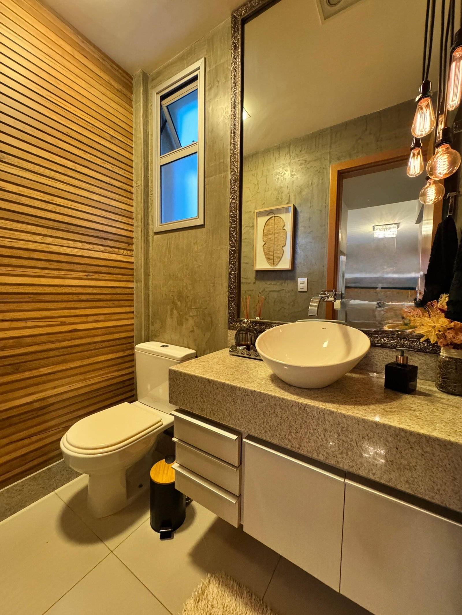 Na área íntima, são 4 quartos, sendo 1 suíte com closet, oferecendo conforto e privacidade para toda a família. Os banhos possuem aquecimento solar, armários planejados e acabamento em granito, unindo economia e alto padrão.