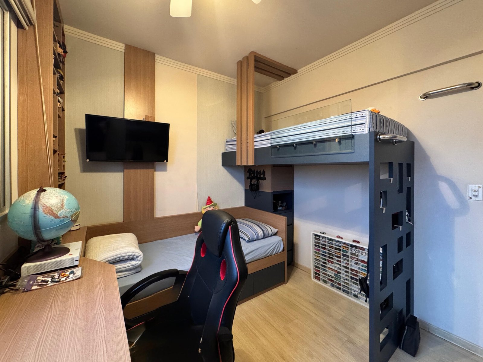 O imóvel dispõe ainda de 3 vagas de garagem paralelas e independentes, além de box de apoio na garagem.