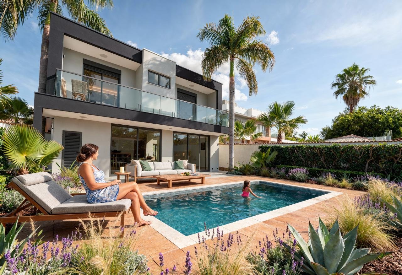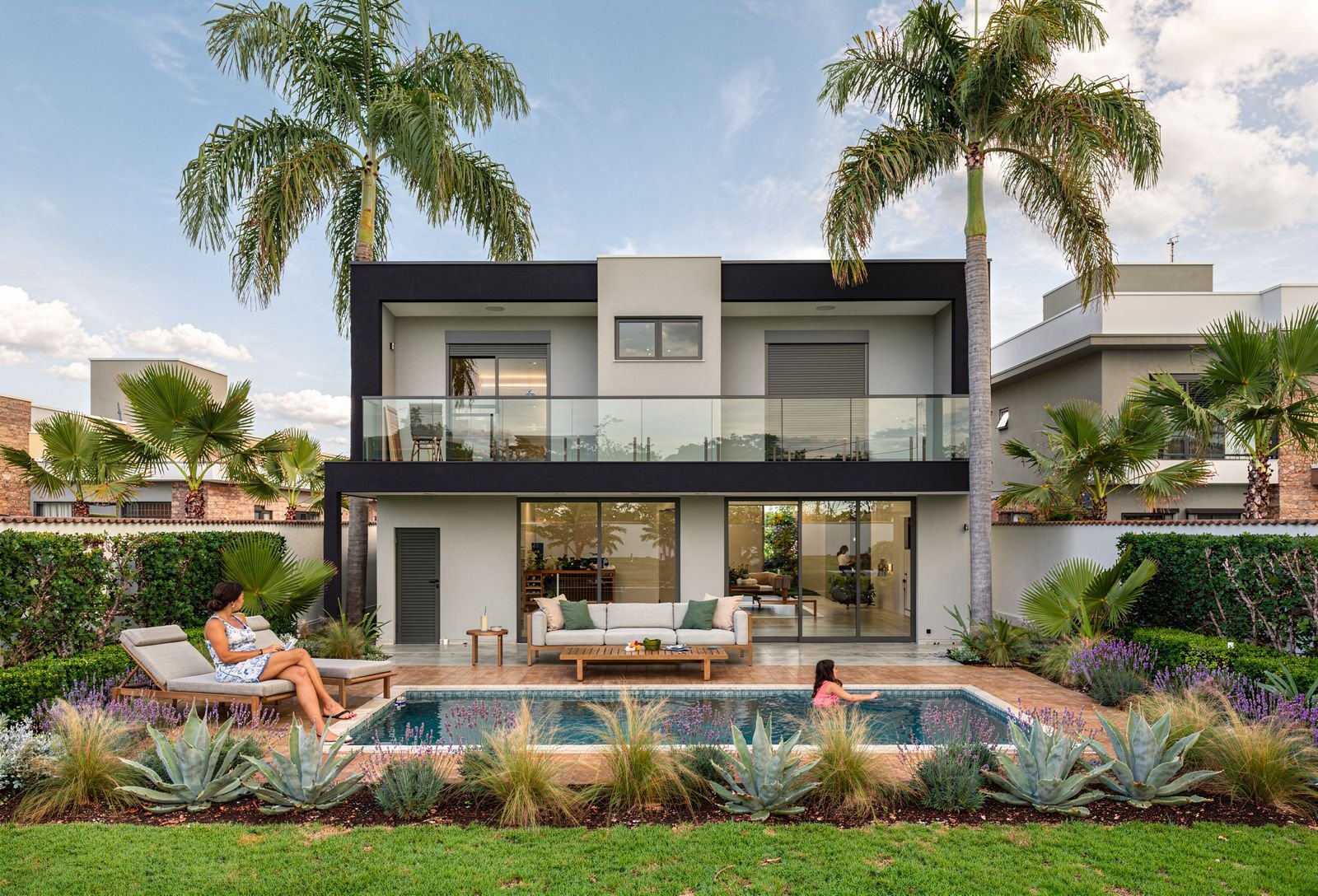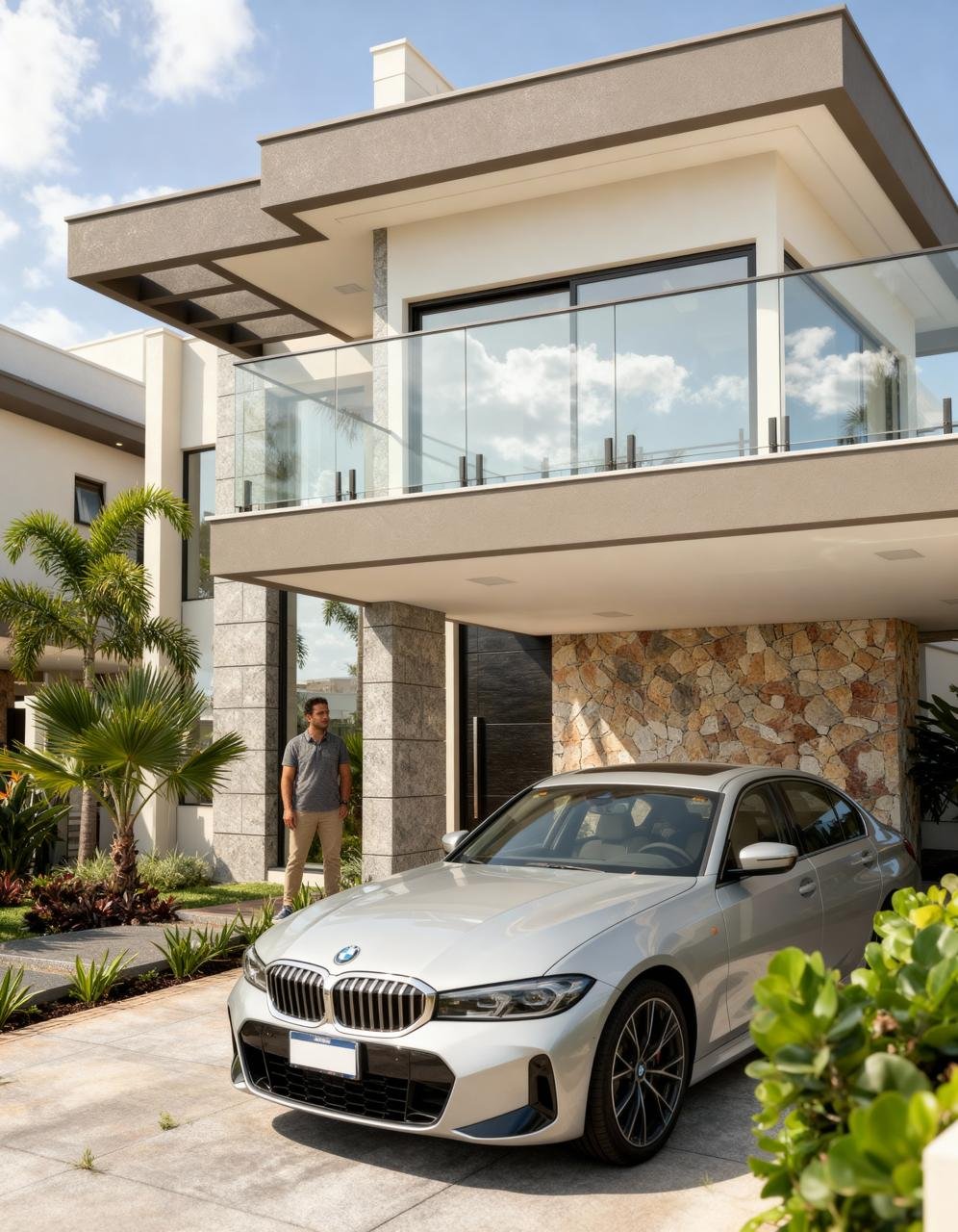 Com 215m² de área construída em um lote de 500m², o projeto foi cuidadosamente concebido para unir imponência arquitetônica, funcionalidade e conforto.