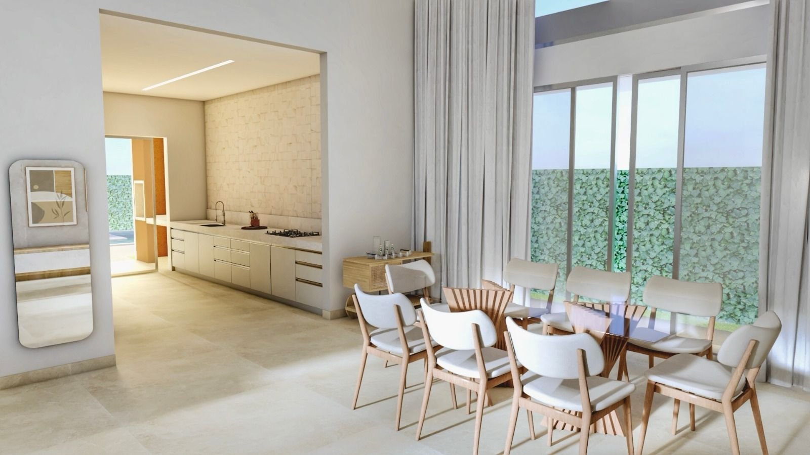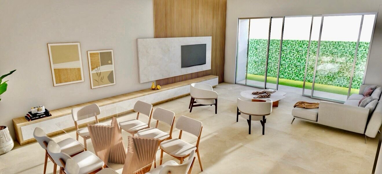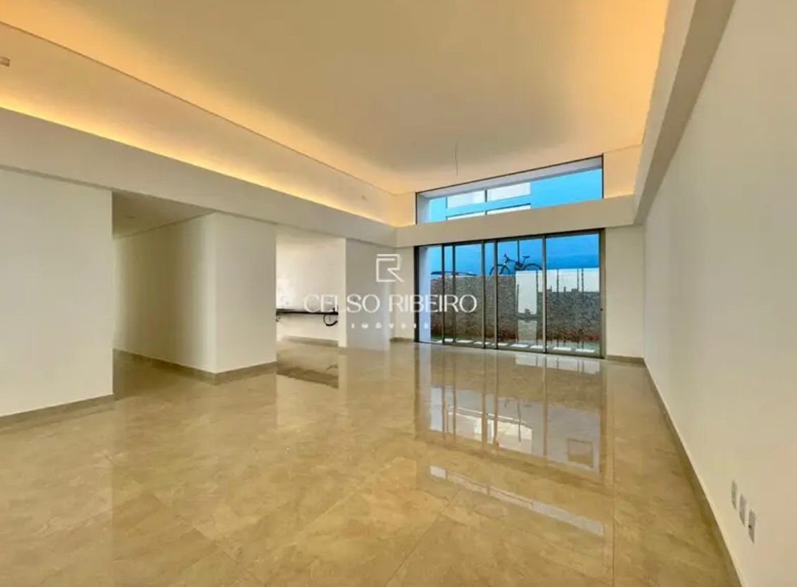 Residência térrea de alto padrão, com arquitetura contemporânea e ambientes amplos integrados.
