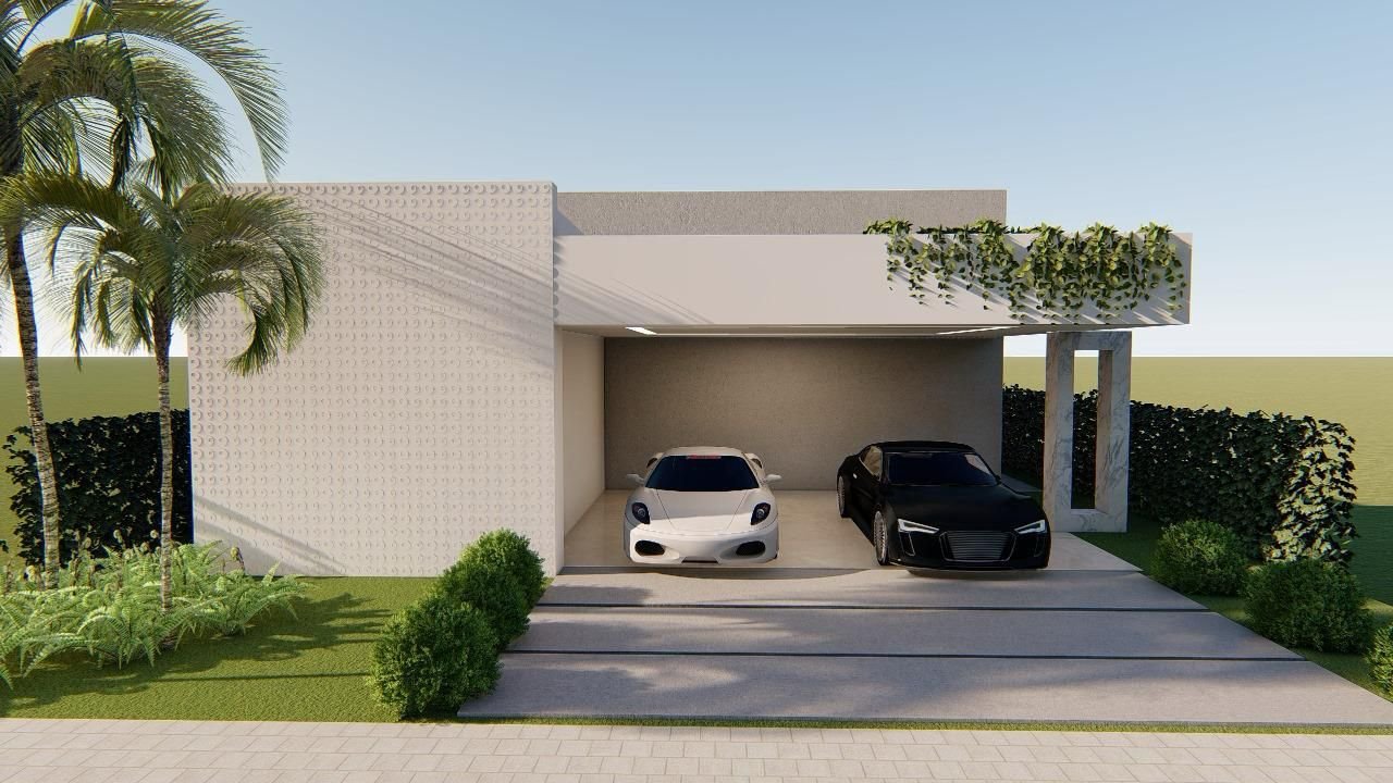 Garagem para 4 veículos (2 cobertos) com infraestrutura para carregamento de carro elétrico.