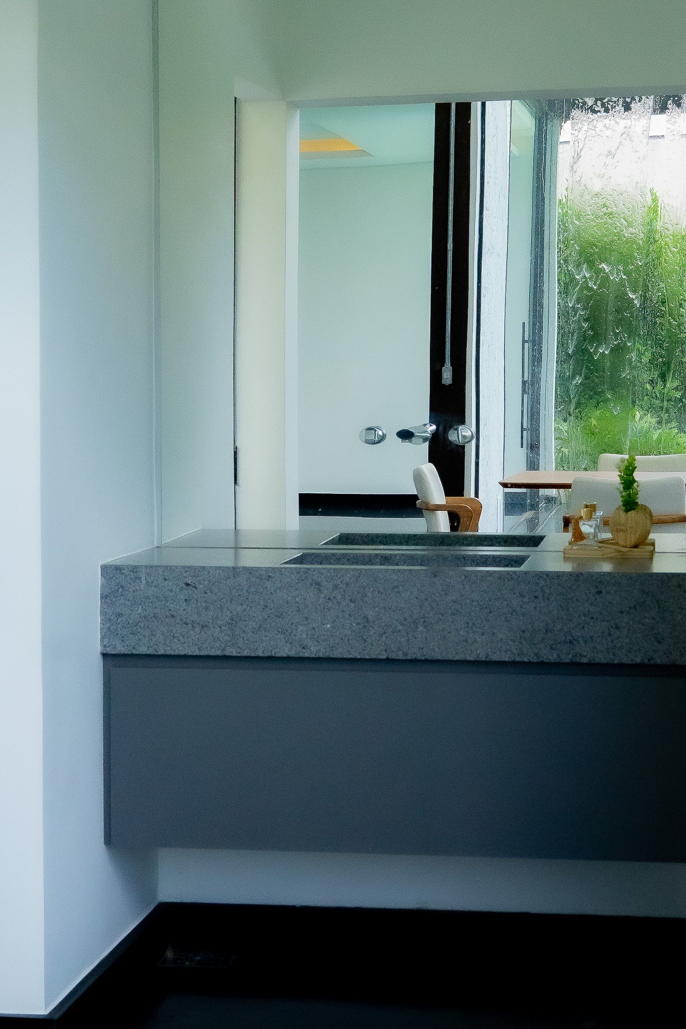 • Suíte Master: Ampla e reservada, com uma vista serena que se conecta visualmente à área externa e à piscina. O banheiro comtempla banheira de hidro, chuveiro tipo cascata e armários planejados