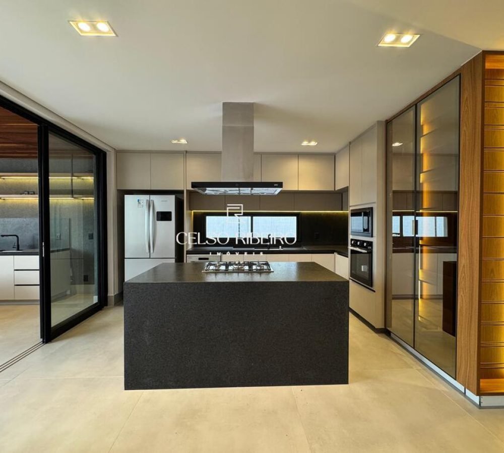 * Espaço gourmet integrado, com pé-direito duplo, sistema de som e automação
