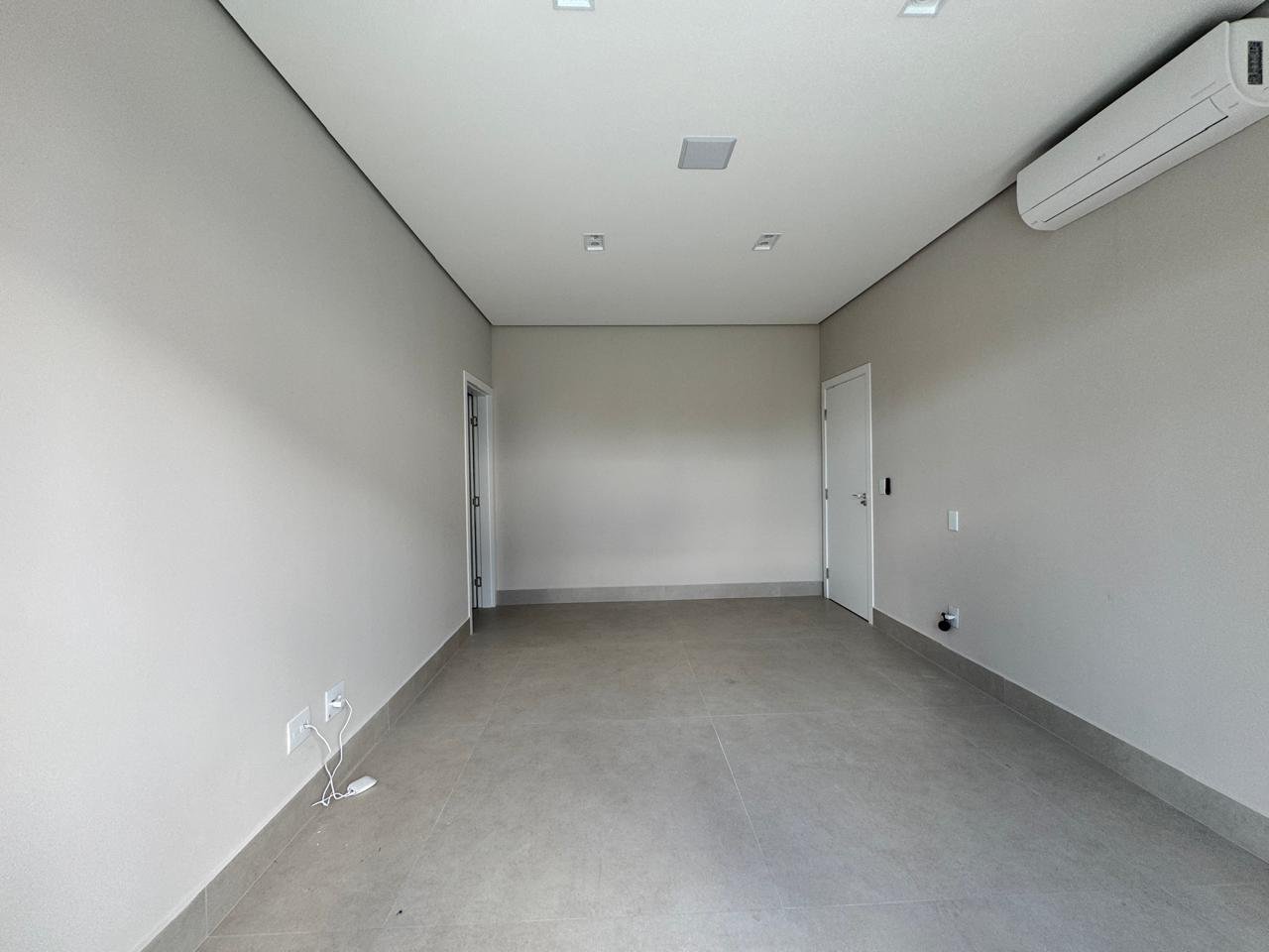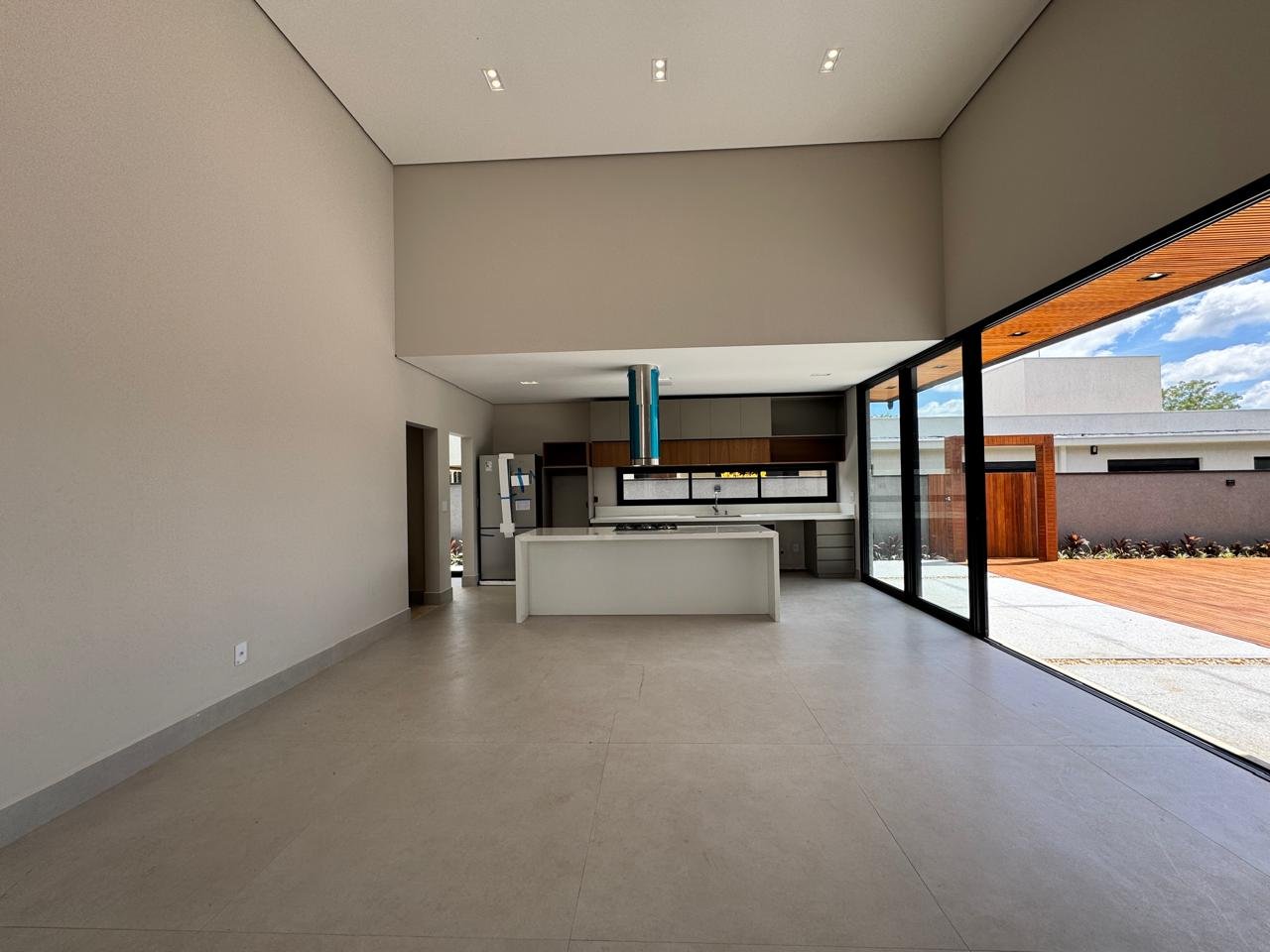 A casa possui projeto arquitetônico contemporâneo, fachada imponente e living com pé-direito duplo e ar-condicionado central.