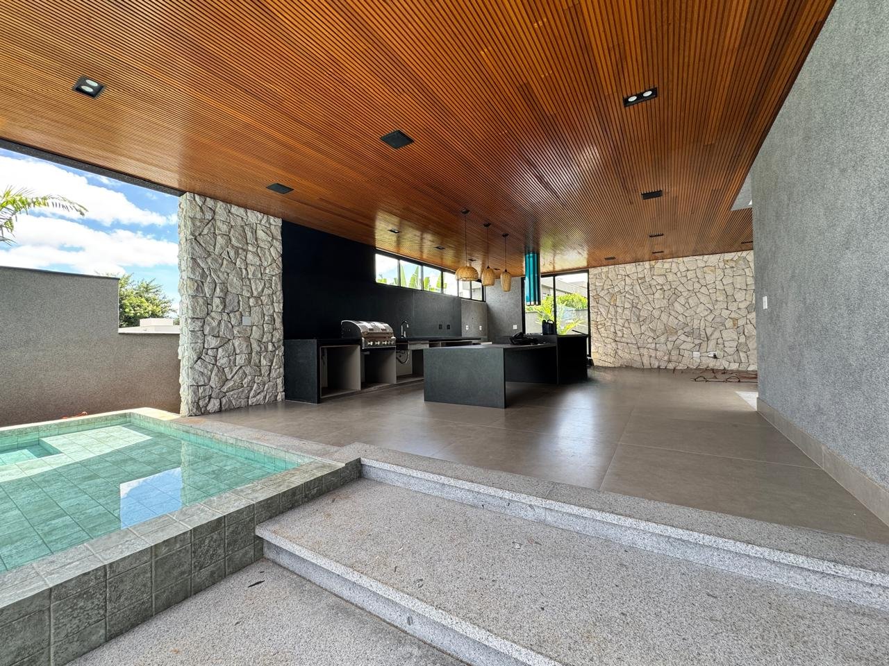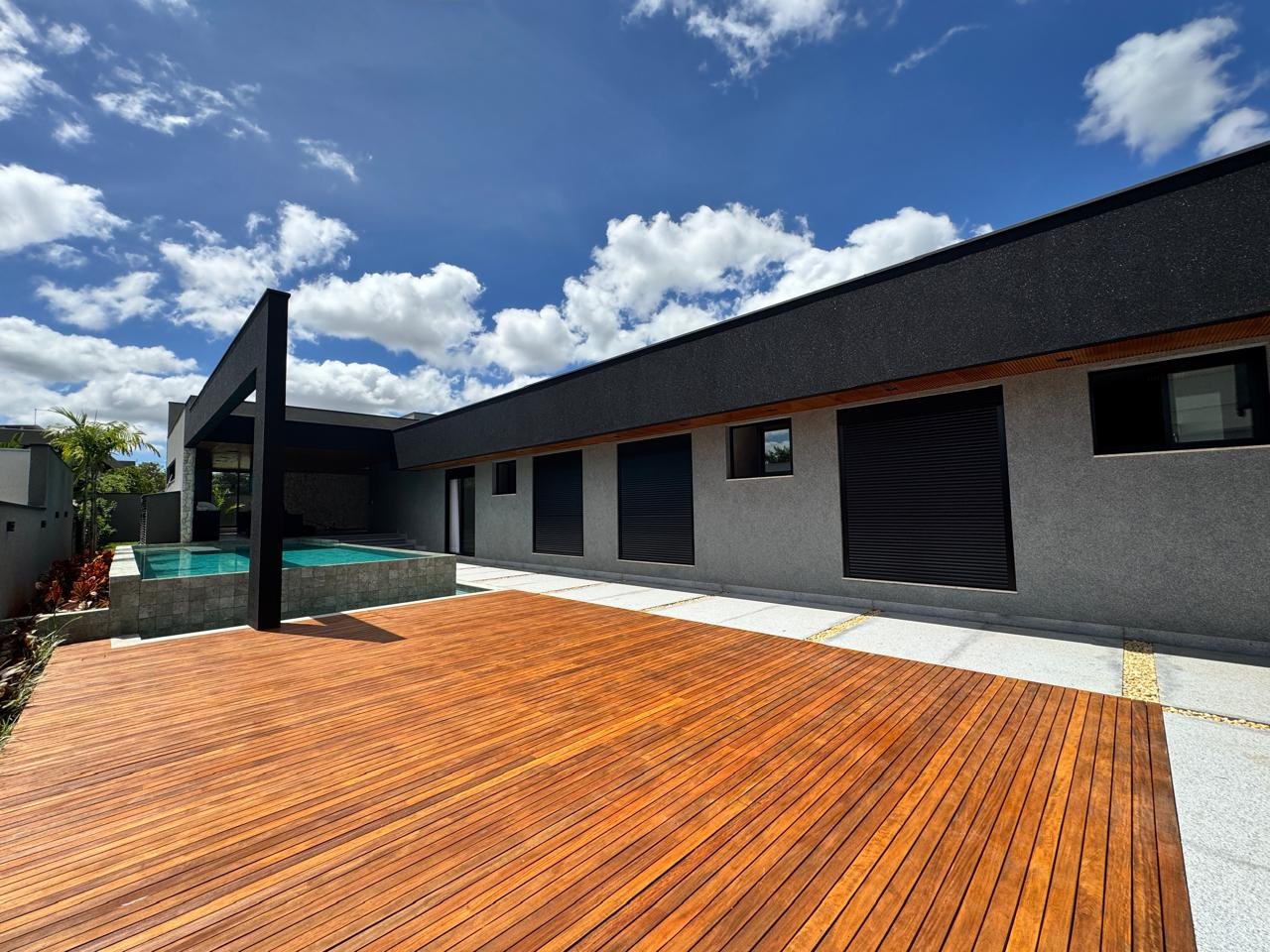 Residência de alto padrão em condomínio fechado, com segurança 24 horas, ronda motorizada e estrutura completa de lazer tipo clube, incluindo piscinas, sauna, academia, quadras esportivas, beach tênis e campo de golfe.