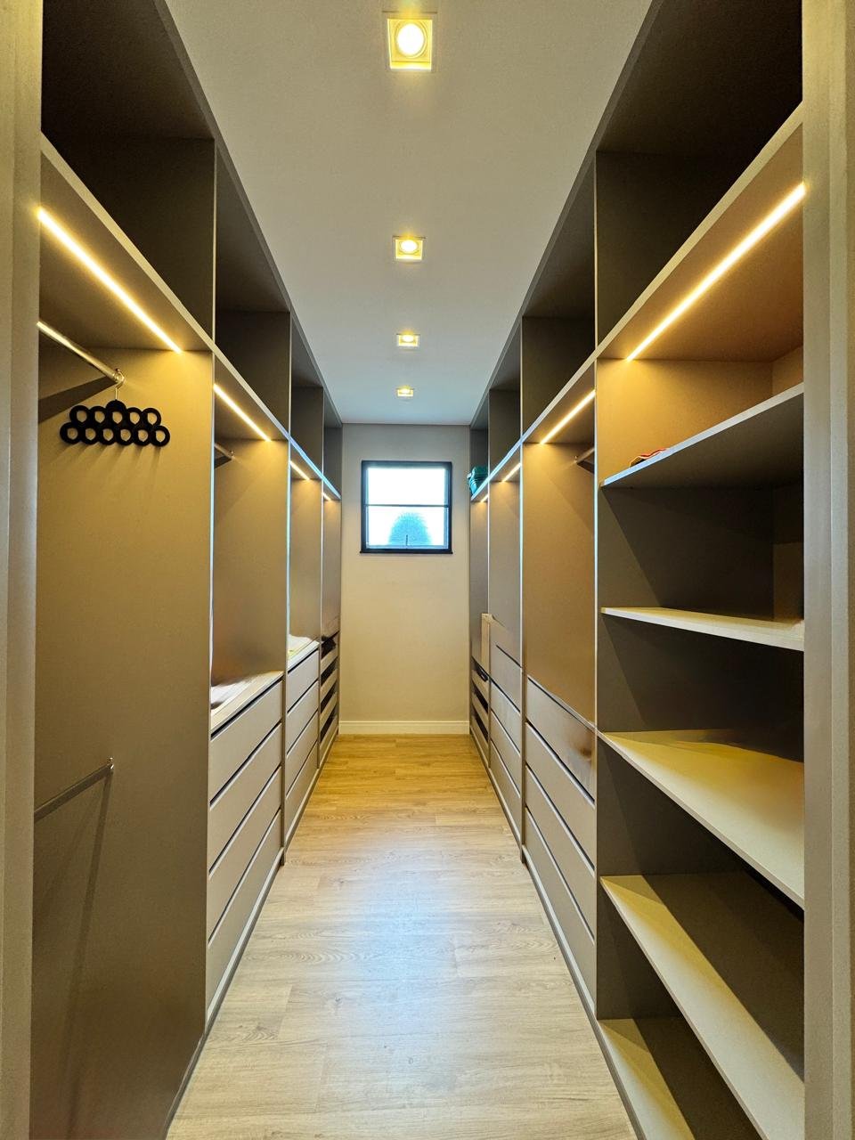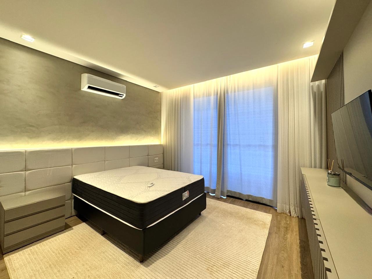 Na área íntima, são 4 suítes confortáveis, todas mobiliadas com armários, camas e cortinas.